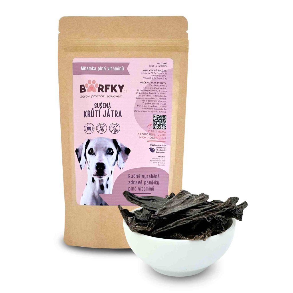 Věděli jste, že krůtí játra jsou velmi chutným a výživným pamlskem, za kterým se psi mohou doslova zbláznit? Díky křupavé, a přitom jemné konzistenci potěší i starší pejsky s citlivějšími zuby. Snadno se lámou, takže je můžete dávkovat i po menších kouscích (např. při výcviku, pro malé psy). Doporučujeme také pro psy trpící alergiemi. Velikost 1 kousku je cca 4–7 cm. 100% přírodní produkt.