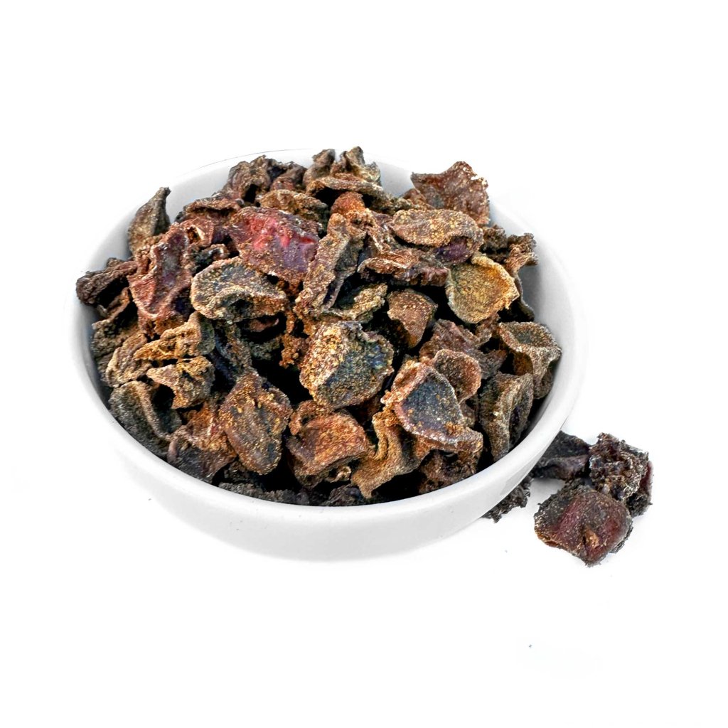 Složení: 97 % sušené kuřecí žaludky v potravinářské kvalitě, 3 % mletá sušená kelpa z certifikovaných zdrojů testovaná na nízký obsah arzénu a těžkých kovů